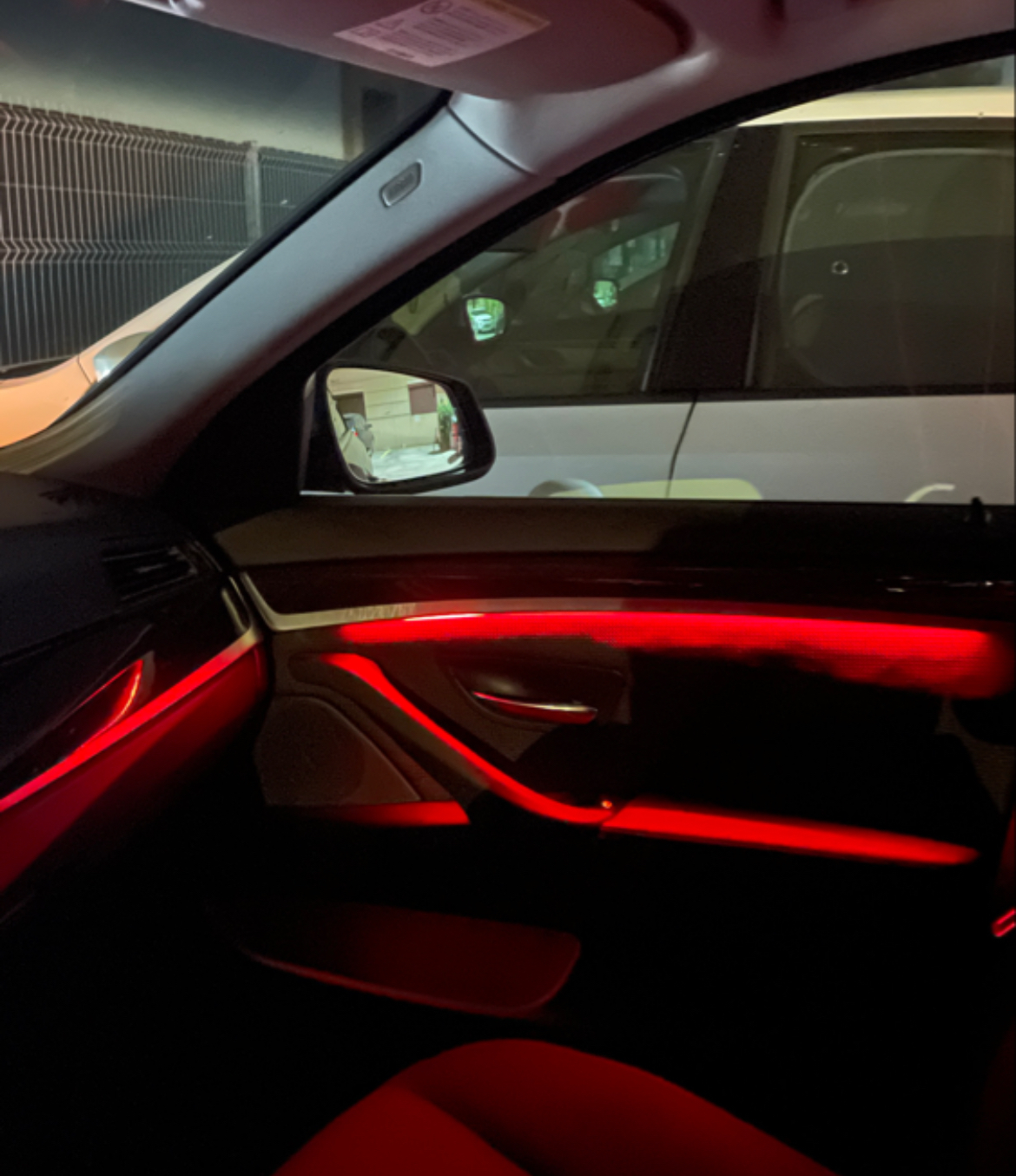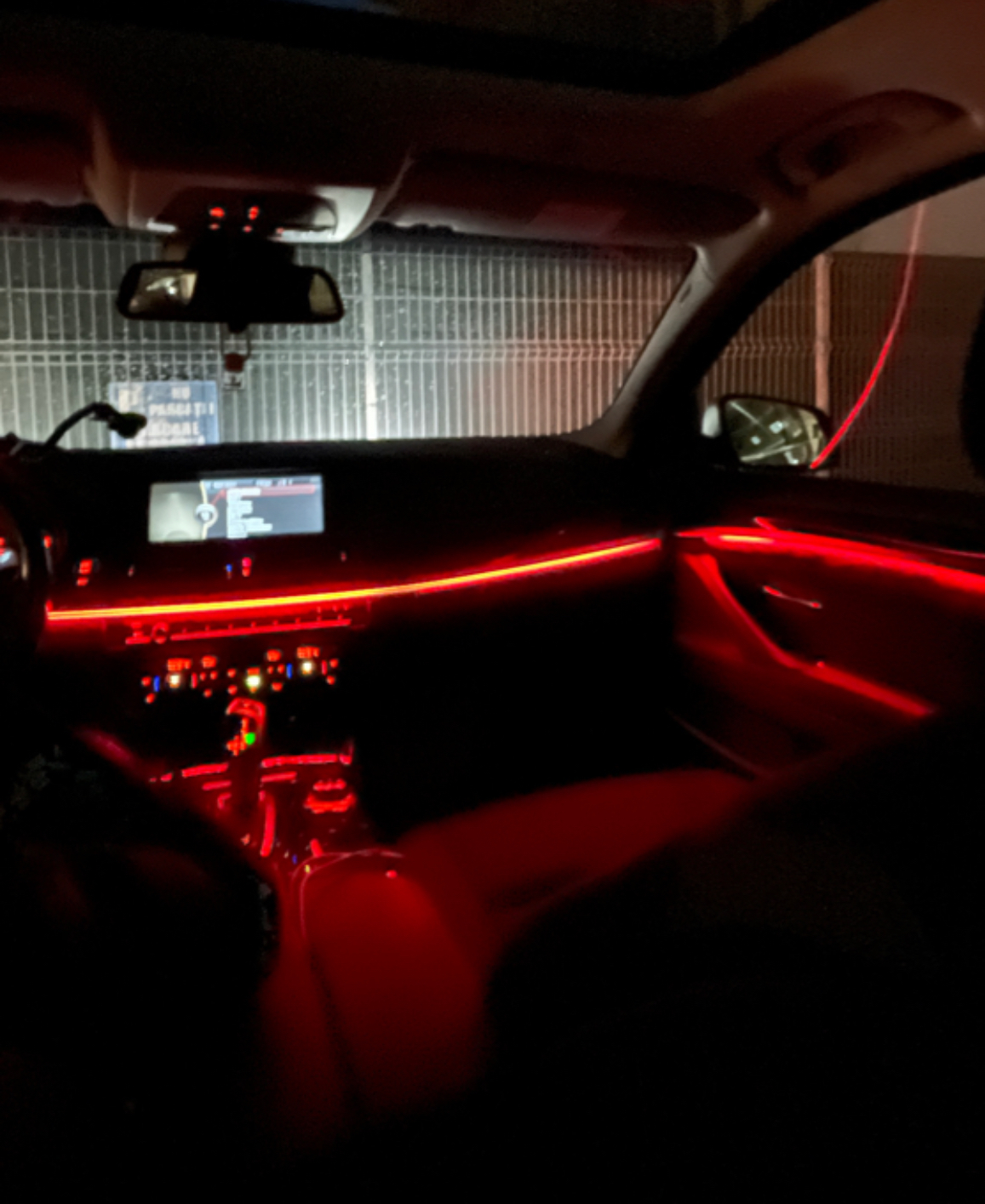 De controler-ul principal sunt mufate 2 benzi acrylic RGB, una de 35cm si una de 110cm pentru bord si 4 module pentru sub scaune. Cele 4 controlere secundare se conecteaza wireless la cel principal si de ele sunt mufate cate o banda acrylic pentru usi, cate un modul pentru buzunare usi si cate un modul pentru manere usi.