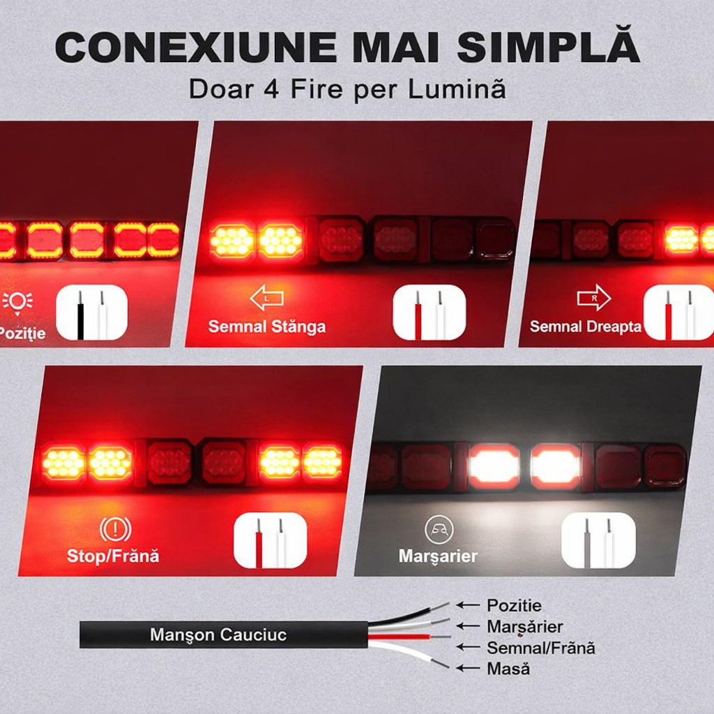 Îmbunătățește siguranța și aspectul vehiculului tău cu un set profesional de stopuri LED triple multifuncționale, concepute pentru utilizare intensivă pe remorci, rulote, camioane, platforme auto sau utilaje agricole.