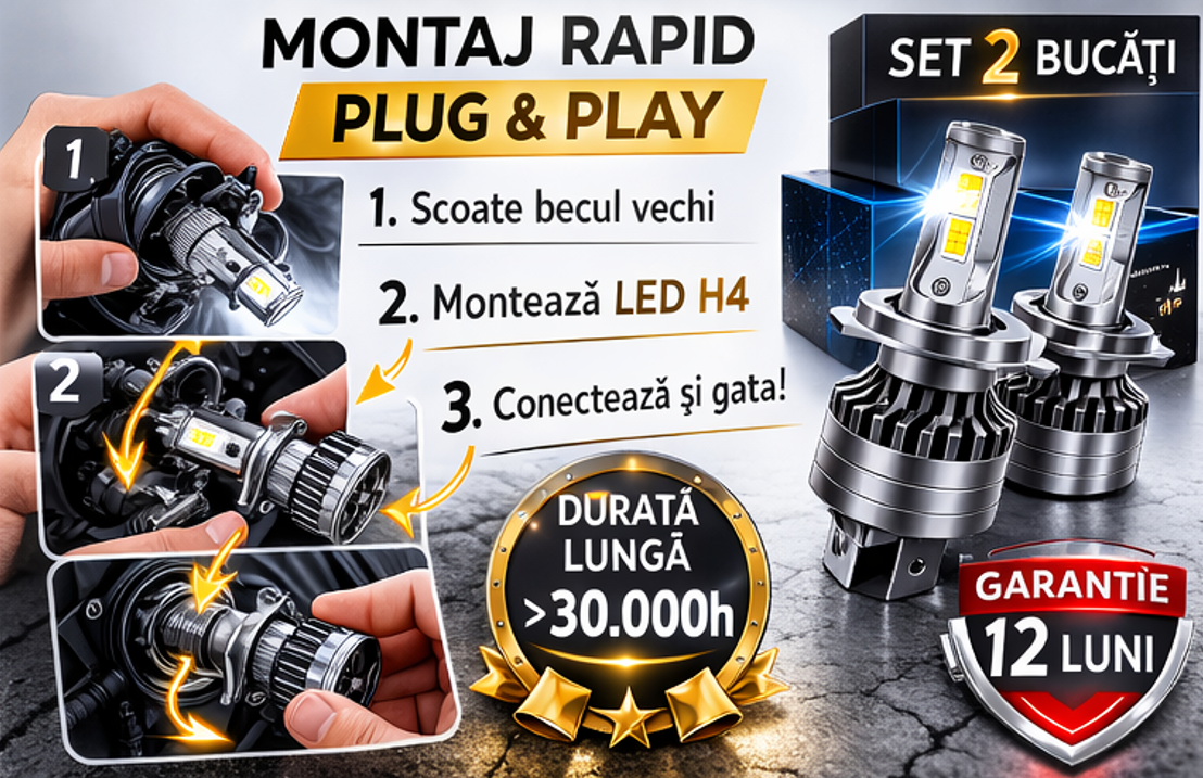 Setul de becuri LED H4 este dotat cu tehnologie Canbus, asigurand o compatibilitate perfecta cu sistemul electronic al masinii tale si eliminand erorile sau mesajele de avertizare. Montajul este rapid si simplu, fara a necesita modificari sau adaptari complexe.