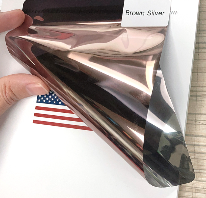 Folie Reflexivă pentru Geamuri TopBazar, Maro Bronz, 60 x 300 cm, Efect Oglindă pentru Intimitate și Protecție Solară UV