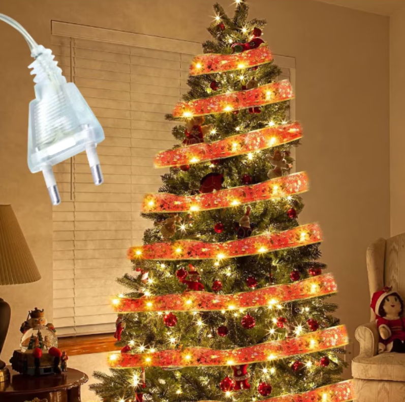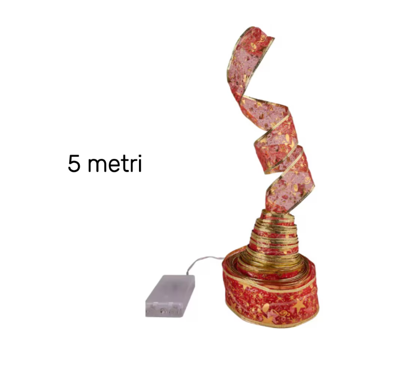 Creează o atmosferă magică de sărbători cu această panglică luminoasă pentru bradul de Crăciun BZRSH! Cu 50 LED-uri care emit lumină alb caldă pe o lungime de 5 metri, această panglică roșie cu model festiv transformă orice spațiu într-un colț de basm. Ideală pentru decorarea bradului, balustradelor scării, ferestrelor sau ușilor, oferă 8 programe de lumini variate – de la licărire blândă la efecte dinamice – pentru un efect vizual captivant. Fabricată din material durabil roșu/auriu, e perfectă pentru interioare confortabile, iluminând serile de iarnă cu căldură și farmec.
