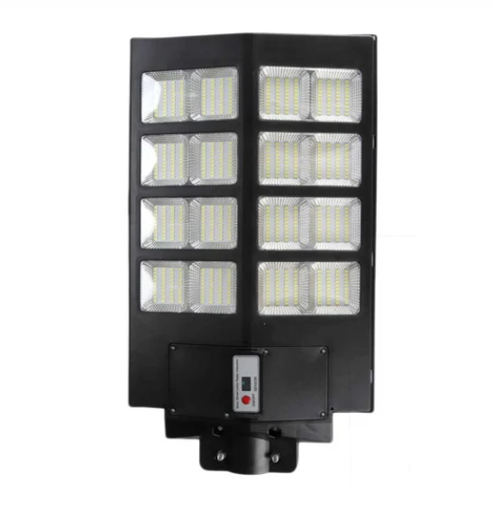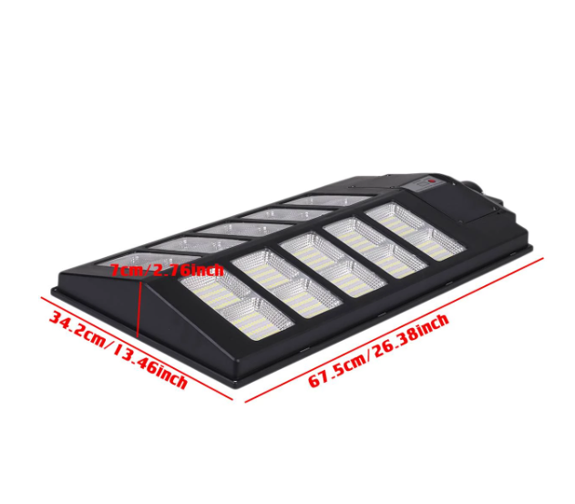 Lampa stradala cu panou solar 400W 640 LED, senzor de lumina, telecomanda Această lampa solară este mult mai strălucitoare decât alte lampi similare, deoarece este echipată cu leduri de mare putere in numar de 640. Calitatea profesională o face să aibă o emisie puternică de lumina chiar și după 12 luni de utilizare și oferă protecție de siguranță pentru proprietatea dvs. toată noaptea .