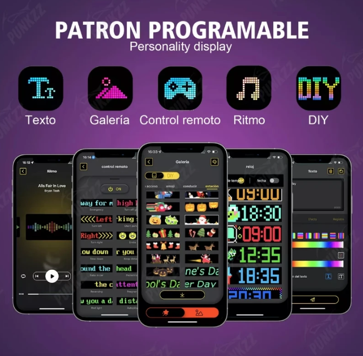 - Control prin Bluetooth si aplicatia iPixel: Gestioneaza rapid si usor mesajele prin aplicatia disponibila pentru Android si iOS.
