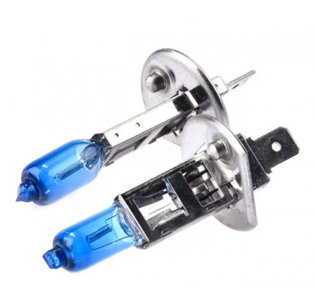 Set 2 becuri halogen H1 100W, Xenon Look cu un aspect stilat, lumina alba 5000K, cu pana la 20% mai multa lumina (comparat cu becurile auto halogen standard).