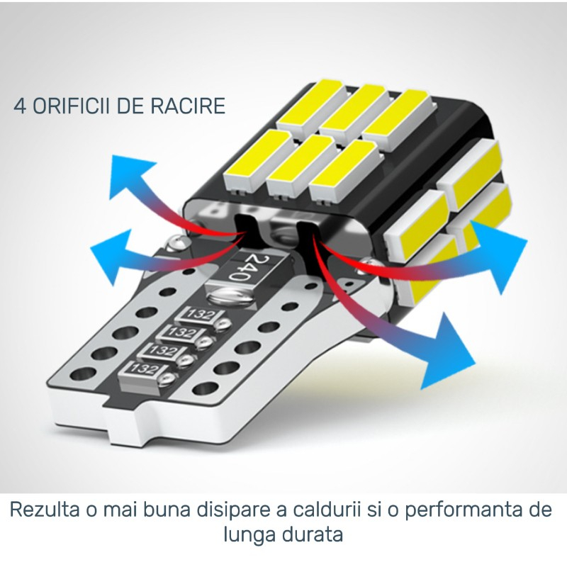 Plug & Play: Instalare rapidă – înlocuiești direct becul vechi. Conexiune sigură cu bază T10/W5W.